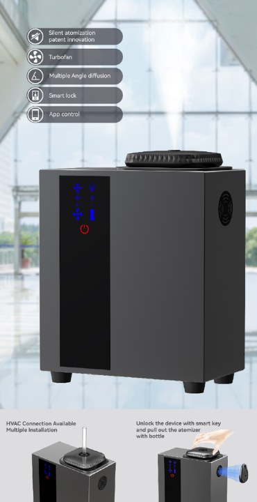 • Turbo Fan Diffusion: Ensures even scent distribution with a 10,000-hour lifespan.